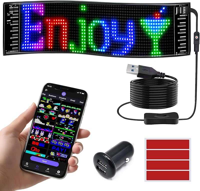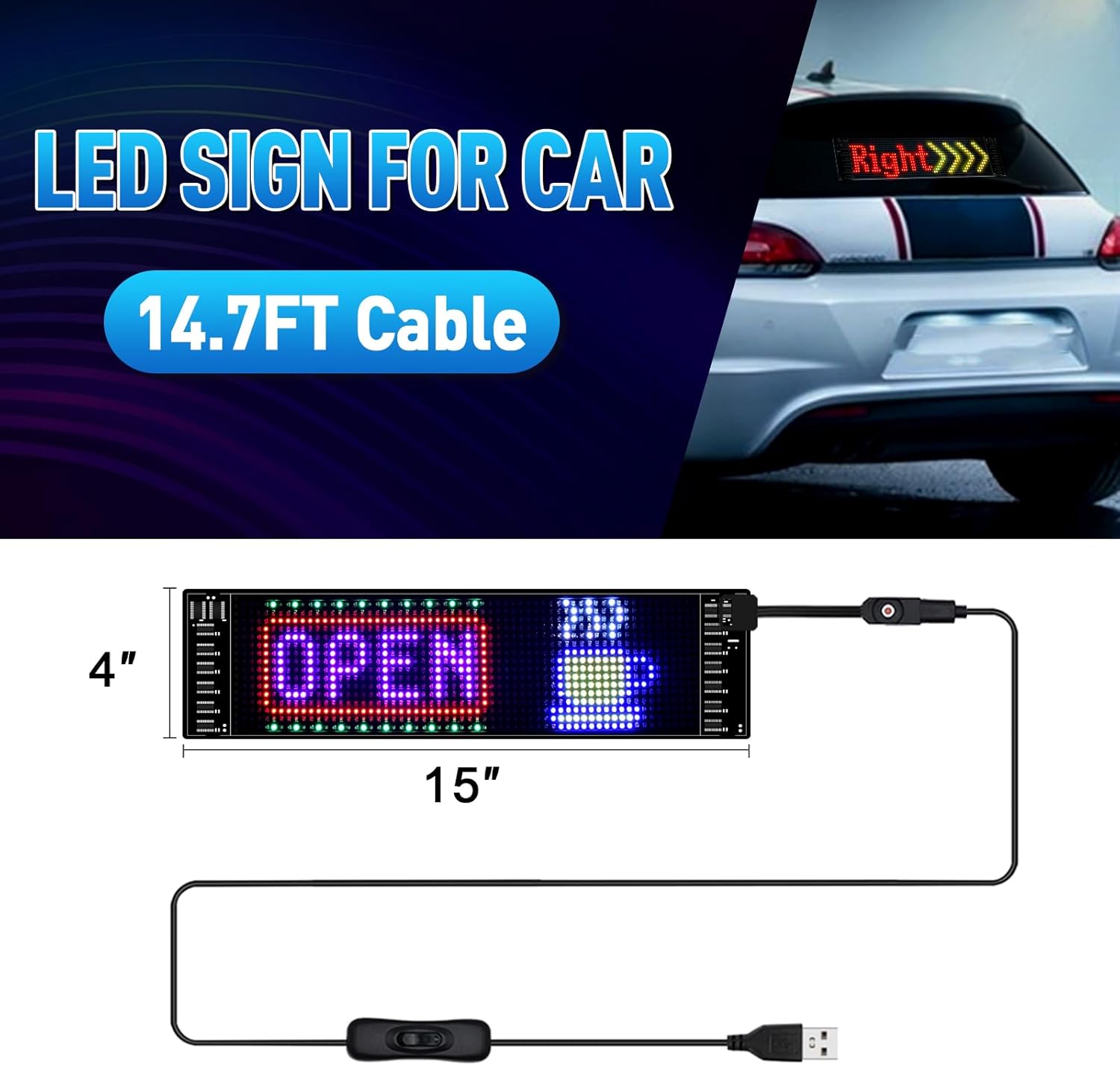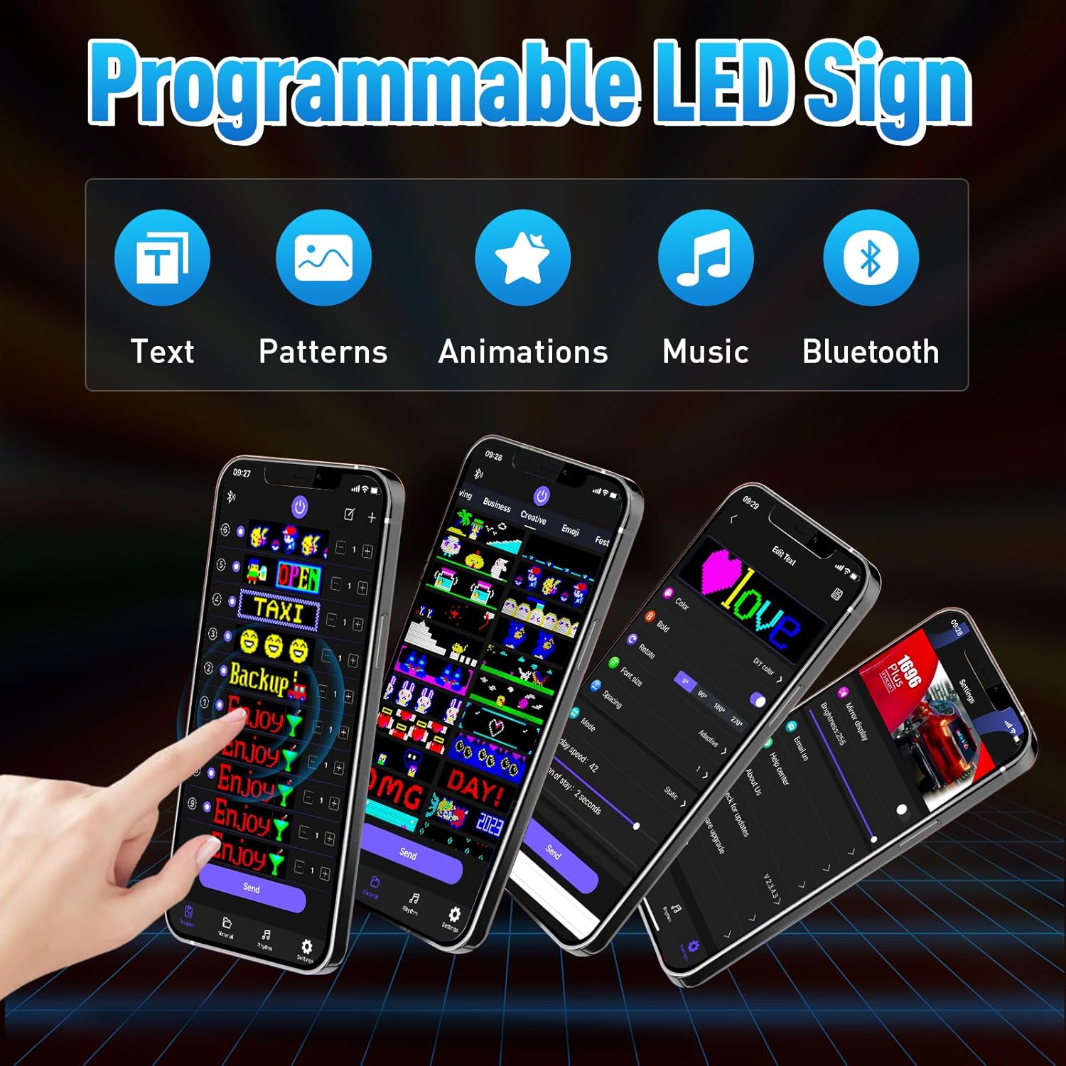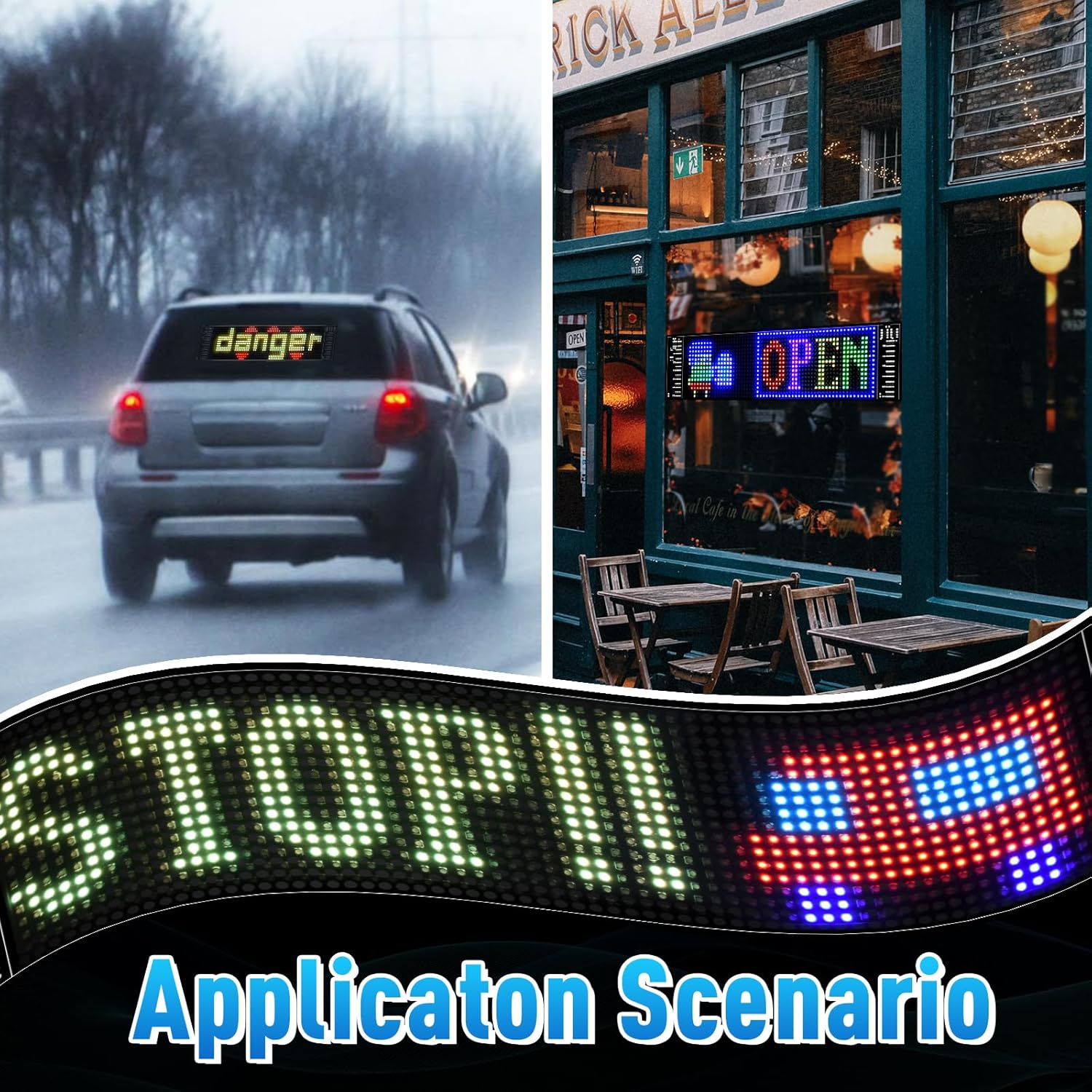 Programmable Full Color LED Sign - Bluetooth APP Control Custom Text Pattern for Car Business Store