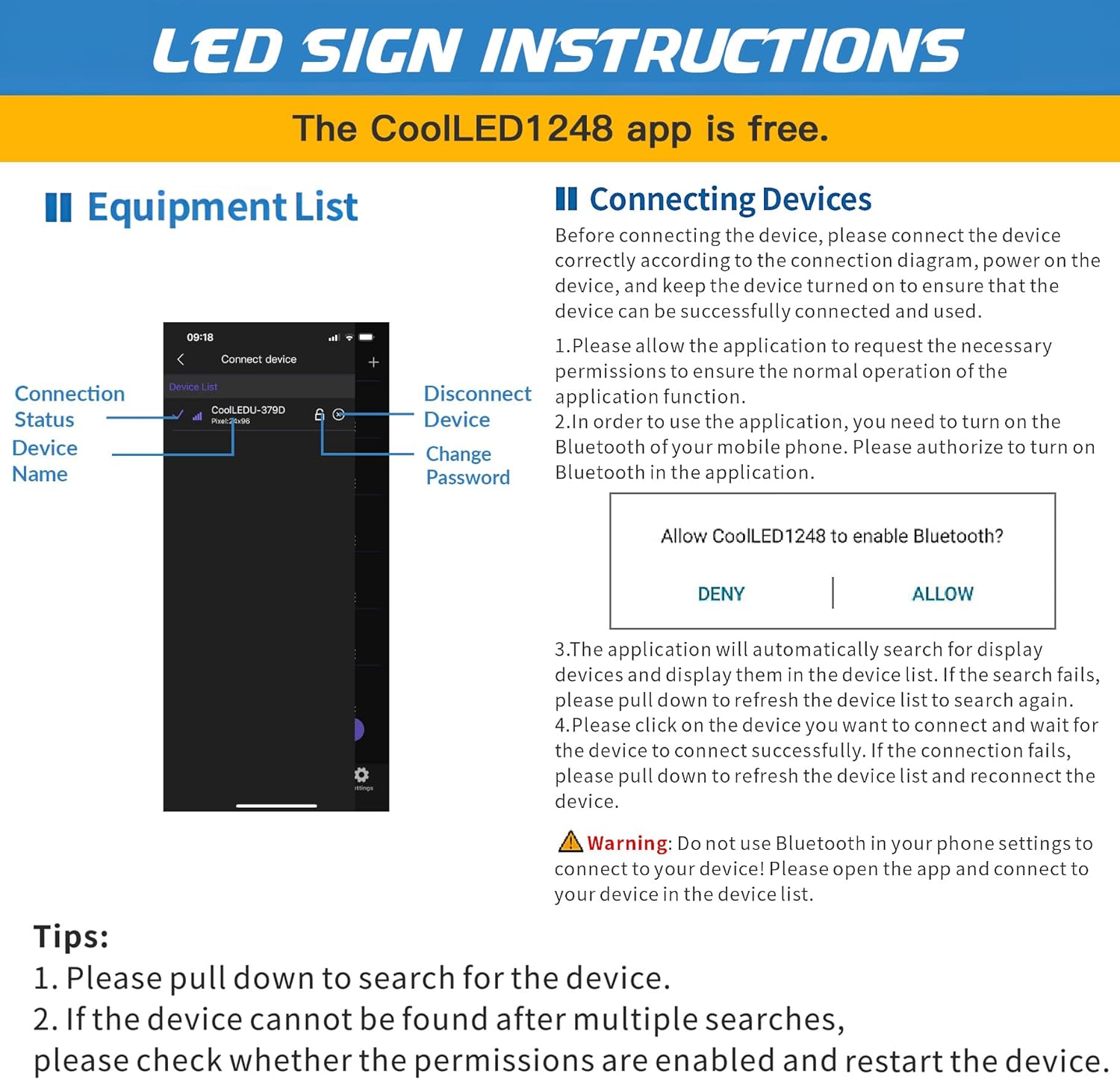 - Bluetooth Smart Control - Easy control via smartphone APP, customize images, text, patterns, and animations
